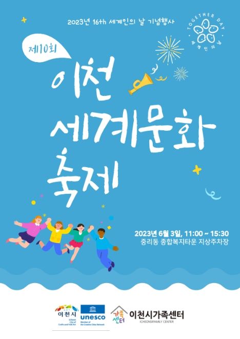 [제주교통복지신문 김강석 기자] 이천시는 이천시가족센터와 우천으로 연기됐던 제10회 이천세계문화축제를 오는 6월 3일 중리동 종합복지타운 주차장에서 개최한다.