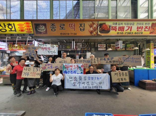 [제주교통복지신문 김강석 기자] 광명시 광명3동에 있는 광명전통시장에서 상인들이 24일 탄소중립 실천을 위한 캠페인에 동참했다.
