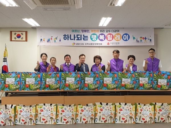 [제주교통복지신문 김강석 기자] 지난 23일 내당2·3동 지역사회보장협의체는 5월 가정의 달을 맞이하여 아동,장애인,어르신 40세대에 키즈홍삼, 두유, 스프 등 2백만원상당의 맞춤형 꾸러미를 전달하는'하나되는 행복릴레이'행사를 가졌다.