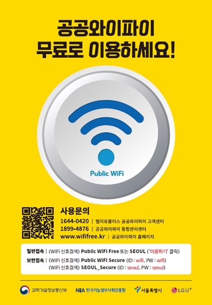 이외에도 유동 인구가 많은 주요 거리, 공원, 전통시장, 문화·관광명소 등 인기 명소와 종합사회복지관, 어르신·아동청소년·여성다문화·장애인 등 복지시설에 2,500여 대의 와이파이를 추가 설치했다.