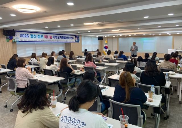 [제주교통복지신문 김강석 기자] 경산교육지원청은 25일 경상북도 남부미래교육관에서 경산, 청도 지역의 초, 중, 고 책나눔 학부모자원봉사자 70여명을 대상으로 도서관 지원을 위한 역량강화 연수를 실시했다.