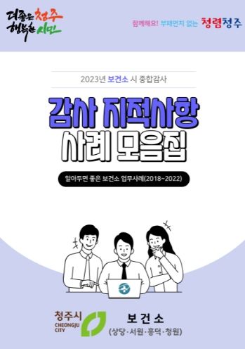 [제주교통복지신문 김강석 기자] 청주시 상당보건소는 행정착오를 개선하고 시정의 청렴도를 높이기 위해 보건소의 시 자체 종합감사 사례를 모아, ‘감사 주요 지적사항 사례 모음집’을 발간했다고 25일 밝혔다.