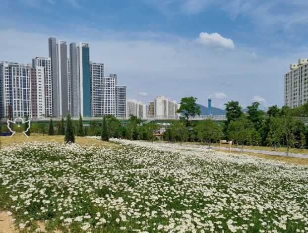 대전 중구(구청장 김광신)는 중촌근린공원 꽃단지 조성사업의 하나로, 샤스타데이지 군락지를 조성하고 포토존을 설치하는 등 도심 속 볼거리를 제공한다고 밝혔다.