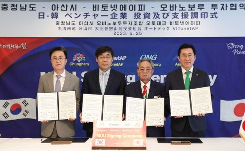 지난 21일부터 일본을 출장 중인 김태흠 지사는 25일 도쿄 뉴오타니 호텔에서 오바 노보루 긴잔카이 투자조합 오바 노보루 이사장, 윤영표 비토넷에이피 대표이사, 박경귀 아산시장과 투자양해각서(MOU)를 체결했다.