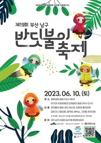 부산 남구는 6월 10일 토요일 평화공원과 이기대 큰고개쉼터에서 제19회 반딧불이 축제를 개최한다고 밝혔다.
