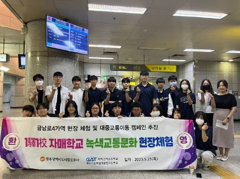이날 학생들은 도시철도를 이용해 금남로4가역에 위치한 스마트팜 ‘자람팜’의 미래농업기술 현장과 5·18민주화운동기록관의 역사 기록물을 살펴본 후 대중교통 이용활성화 캠페인에 참여했다.