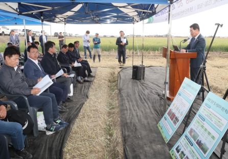 [제주교통복지신문 김강석 기자] 부안군은 25일 백산면 대수리에 위치한 사료용 밀 ‘당찬’재배 단지에서 수입조사료 대체를 위한 현장실증 연시회를 개최했다고 밝혔다.
