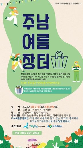 오는 27일 ‘주남 여름 장터’는 오전 11시부터 오후 4시까지 주남저수지 탐방객편의센터 앞 공터에서 개최되며 6월과 9월부터 11월까지 매월 마지막 주 토요일에 4회 더 개최될 예정이다.