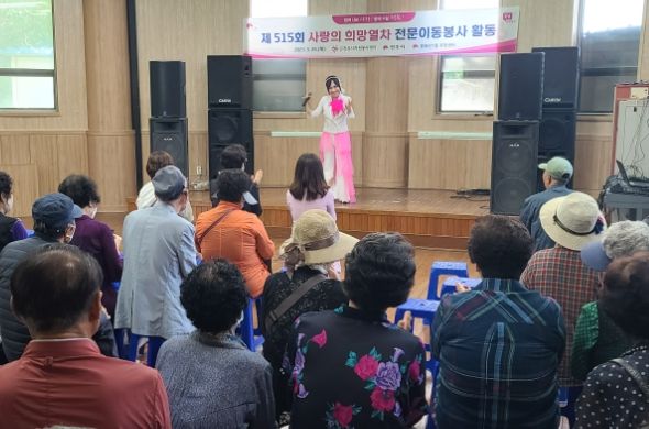 전주시자원봉사센터와 중화산1동은 25일 완산야호청소년센터와 원불교 화산교당에서 노인 150여 명을 대상으로 점심 식사와 더불어 문화공연과 건강 돌봄까지 제공하는 ‘515회 사랑의 희망열차’ 나눔 봉사를 펼쳤다.