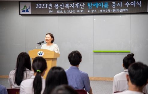 박기찬 용산복지재단 이사장은 “증서 수여식은 열정 가득한 함께이루미들의 미래를 응원하는 자리”라며 “앞으로도 청소년들의 자립을 위해 용산복지재단이 함께 하겠다”라고 말했다.