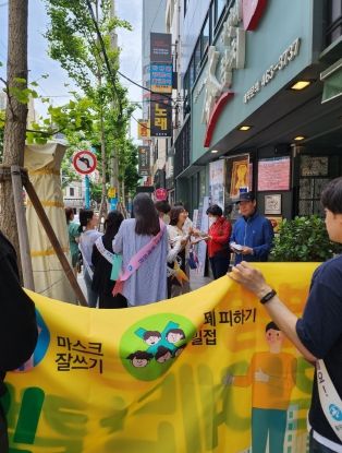 이날 보건소 각 사업 담당자들이 중앙동 4가 해관로85번길 일대를 중심으로 순회하면서 건강계단 조성과 손씻기, 마스크 쓰기, 밀접‧밀폐‧밀집 피하기 등 감염병 예방수칙 건강 메시지를 홍보했다.