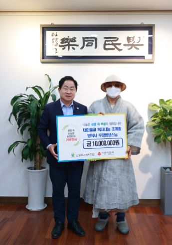 [제주교통복지신문 김강석 기자] 남양주시 진건읍에 소재한 대한불교조계종 명덕사 주지 우정방생스님은 25일 가정의 달을 맞아 지역 내 어려운 이웃을 돕기 위해 후원금 1천만 원을 남양주시복지재단에 전달했다.