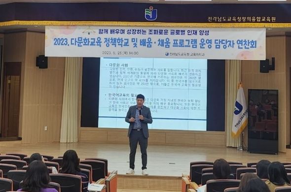 [제주교통복지신문 김강석 기자] 전라남도교육청이 25일 전라남도교육청창의융합원 대강당에서 2023. 다문화교육 정책학교 및 배움 채움 프로그램 운영학교 담당자, 교육지원청 담당자 100여 명을 대상으로 연찬회를 가졌다.