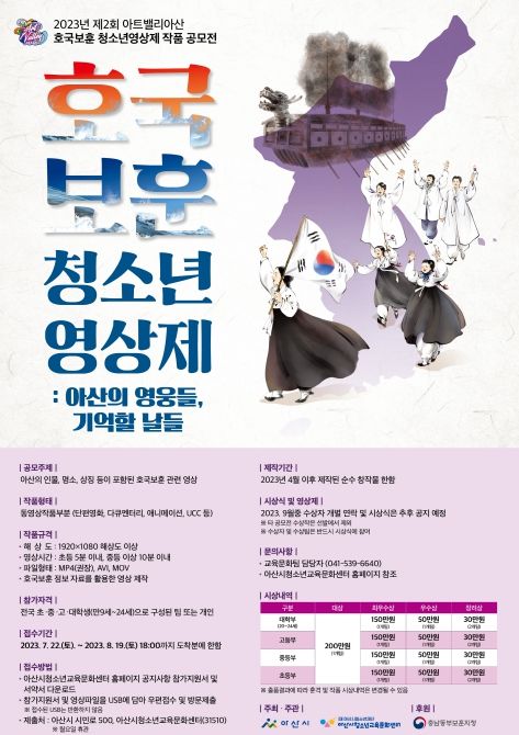 영상제의 공모 주제는 아산의 인물‧명소‧상징 등이 포함된 호국보훈관련 영상이며, 공모 대상은 전국에 거주 또는 재학중인 만 9~24세의 청소년이다.