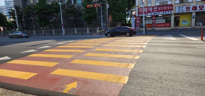 ▽ 어린이 보호구역 노란색 횡단보도 시범 설치