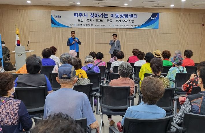 [제주교통복지신문 김강석 기자] 파주시는 25일 법원읍 행정복지센터에서 취약계층을 대상으로 5개 분야(보건, 복지, 일자리, 금융, 주거)에 대한 상담 및 복지서비스를 제공하는 찾아가는 이동상담센터를 운영했다.
