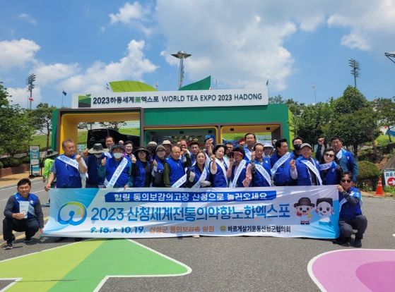 지난 25일 하동세계차엑스포에서 실시한 이번 행사에서는 2023산청세계전통의약항노화엑스포를 비롯해 우리고장 알리기 홍보활동을 펼쳤다.
