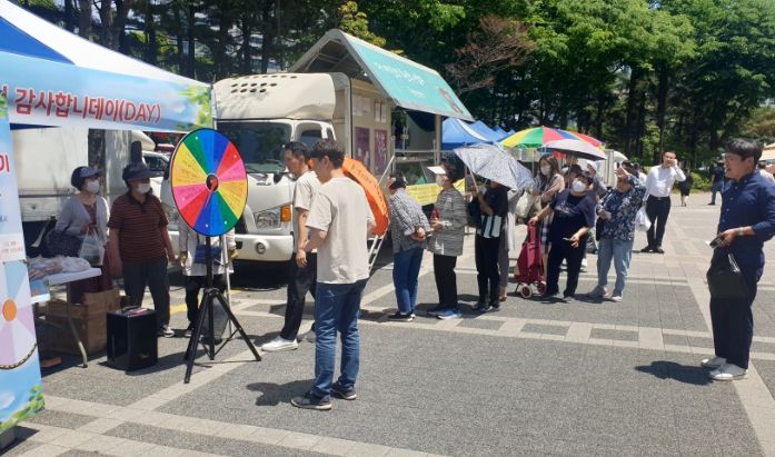 구는 이날 주민의 성원에 보답하고 장터에 재미를 더하고자 행운의 룰렛돌리기 이벤트 ‘감사합니데이(DAY)’ 행사를 12시 30분부터 개최한다.