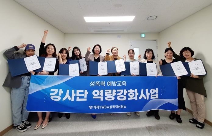 [제주교통복지신문 김강석 기자] 거제YWCA성폭력상담소가 지역 내 성폭력 예방교육 기반을 확립하기 위한 성폭력 예방교육 강사단 역량강화교육을 이수한 강사 10명을 대상으로 ‘2023 성폭력예방교육 강사단’ 위촉식을 진행했다.