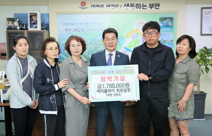 [제주교통복지신문 김강석 기자] 부안군 국민체육센터 내 수영동아리‘버터플라이’회원일동은 지난 25일 부안군 근농인재육성재단을 방문하여 지역 인재 장학금 178만원을 기탁했다.