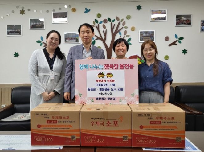 김하수 율천동장은 “올해도 좋은 선물을 후원해주신 수원시약사회와 후원물품 연계·발굴에 힘써주신 김미진 코치님께 감사드린다”며 “아이들이 행복한 율천동을 만들 수 있도록 최선을 다할 것”이라고 말했다.
