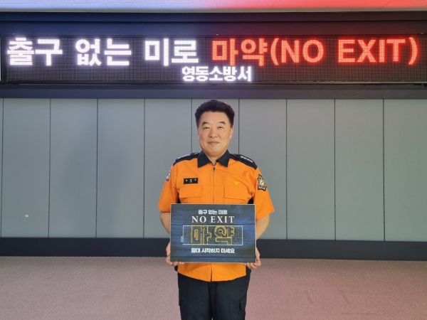 [제주교통복지신문 김강석 기자] 영동소방서는 26일 마약 예방과 마약범죄 근절을 위한 ‘출구 없는 미로 NO EXIT’ 릴레이 캠페인에 동참했다.