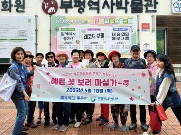 ‘꽃 보러 마실가~孝’는 외부활동이 자유롭지 못한 어르신에게 활력을 불어 넣고자 굴포천에서 꽃도 보며 부평역사 박물관과 카페도 방문해 문화 체험과 친목도 다지는 내용으로 진행돼 호응도가 높았다.