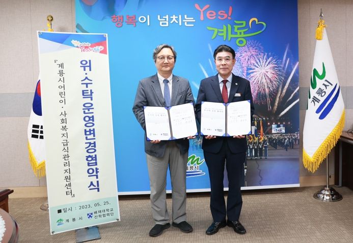 [제주교통복지신문 김강석 기자] 계룡시는 지난 25일 시청에서 배재대학교 산학협력단과 “어린이·사회복지급식관리지원센터 위탁운영 변경 협약”을 체결했다고 밝혔다.