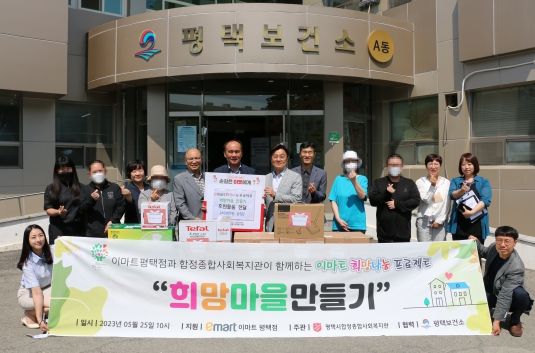 [제주교통복지신문 김강석 기자] 이마트평택점과 평택시 합정복지관이 함께하는 '희망마을 만들기'에서는 경제적 어려움을 겪고 있는 지역 내 정신질환자를 지원하고자 지난 25일 300만원 상당의 가전제품을 평택시정신건강복지센터에 전달했다.
