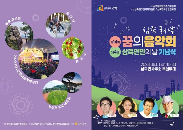 [제주교통복지신문 김강석 기자] 안성시 삼죽면 이장단협의회와 주민자치위원회는 오늘 6월 1일(목) 삼죽면사무소(삼죽면 삼죽로 112) 특설무대에서 “제4회 삼죽면민의 날 기념식 및 제14회 삼죽 국사봉 꿈의 음악회”가 개최한다고 밝혔다.