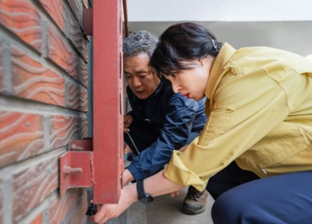 이날 현장에서 설치되는 일체형 물막이판은 구 자체적으로 개발한 특수방범창이다. 전국 최초이고, 현재 특원 출원까지 냈다. 물막이판과 방범창의 기능을 하나로 합친 것으로 평상시에는 외부로부터 침입을 차단하고, 침수 시에는 주택 내부에 잠금 장치가 있어 잠금장치를 열고 외부로 나갈 수 있도록 설계했다.