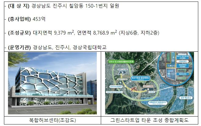 특히, 경상남도 진주시의 사업은 경상국립대 칠암캠퍼스를 중심으로 저탄소 그린산업단지, 진주 혁신도시로 이어지는 연결과, 인근 3개 도시재생지구(성북, 강남, 상대) 및 우주항공 관련 지역인프라를 기반으로,