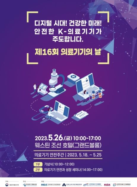 [제주교통복지신문 김강석 기자] 식품의약품안전처는 ‘제16회 의료기기의 날’을 맞아 ‘디지털 시대! 건강한 미래! 안전한 K-의료기기가 주도합니다’를 주제로 기념식과 세미나를 5월 26일 웨스틴 조선(서울 중구 소재)에서 개최한다.
