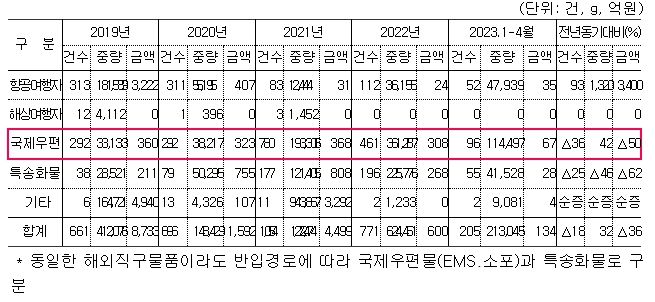 또한, 손승현 우정사업본부장은 “국제우편을 통한 마약류 등 불법물품 반입 차단에 관세청과 함께 노력하겠다.”라며 “관세청과의 협력을 바탕으로 국민이 불편함 없이 우편서비스를 이용할 수 있도록 최선을 다하겠다.” 고 밝혔다.