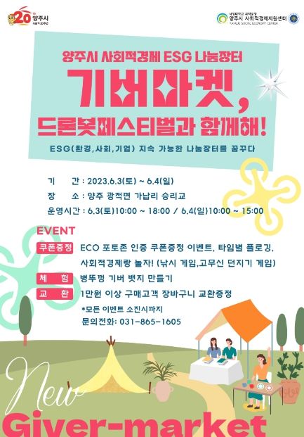 양주시 사회적경제 나눔장터 ‘기버마켓’에 대한 자세한 사항은 양주시사회적경제지원센터 홈페이지를 참조하거나 센터로 문의하면 된다.