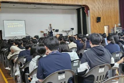 강의 이후에는 전주양지중학교 밴드동아리인 ‘불협화음’과 댄스동아리인 ‘아레테’ 등 학생들이 그동안 갈고 닦은 실력을 뽐내는 자리도 마련됐다.