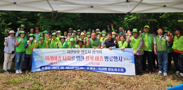[제주교통복지신문 김강석 기자] 청주시는 UN이 정한 ‘생물다양성의 날(5.22)’을 기념해 26일 장동저수지(흥덕구 옥산면)에서 토종어류 방생 및 단풍잎돼지풀 등 생태계교란식물 퇴치 행사를 진행했다.
