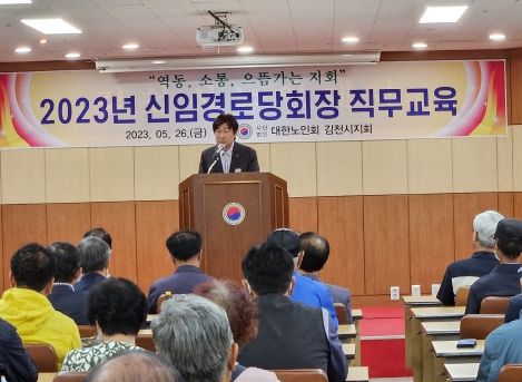 [제주교통복지신문 김강석 기자] 대한노인회 김천시지회는 5월 26일 오전 10시 대한노인회 김천시지회 2층 대회의실에서 경로당 신임 회장 100여 명을 대상으로 교육했다.