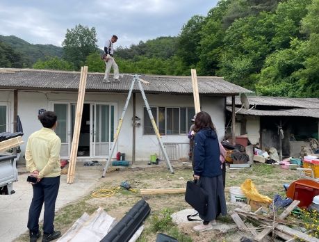 먼저, 첫날 집수리 대상은 노후주택에 거주하는 독거노인 가구로, 이날 봉사단은 창호와 문틀 교체, 단열공사 등으로 주거 공간을 쾌적하게 만들었다.