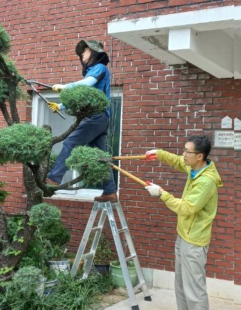 이날 경남교육청과 경남교육노조 간부 30여 명은 마산애육원에서 수목의 가지치기를 하고 원생들에게 간식을 전달했다.