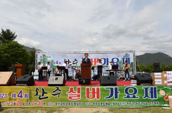 26일 완주군은 봉동읍 둔산공원에서 관내 65세 이상 어르신들을 대상으로 예술적 역량을 발휘할 수 있는 ‘제4회 완주실버가요제’를 성황리에 열었다.