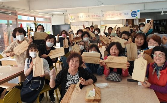 만덕3동 마을복지계획단원들은 성과보고회를 마치고 도마만들기 프로그램을 함께 진행해 소통과 힐링의 시간을 보냈다.