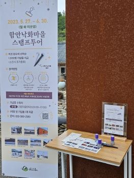 ‘낙화마을 스탬프투어’ 참여방법은 함안낙화놀이 행사 전 괴항마을에서 낙화놀이 테마의 작품들을 감상하고, 작품 앞에 놓인 스탬프 10개를 모두 찍는다. 이를 SNS에 인증하면 괴항마을안내소에서 함안낙화놀이를 형상화한 스노우볼 볼펜을 선착순 1000명에게 지급한다.