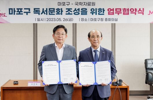 협약식에는 박강수 구청장과 정찬용 국학자료원장이 참석해 마포구민을 위한 도서발간과 마포구 역사 문화 알리기 사업에 관한 상호협력을 약속했다.