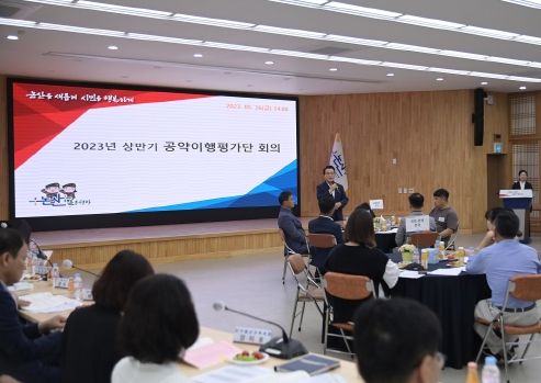 [제주교통복지신문 김강석 기자] 논산시가 지난 26일 오후 ‘2023년 상반기 공약이행평가단’ 회의를 열고 민선 8기 공약사업 추진실적을 점검했다. 논산시는 지난해 8월 시민과 함께 소통하며 공약사항을 점검ㆍ평가하려는 취지로 25명의 일반시민으로 구성된 공약이행평가단을 위촉해 운영 중이다.