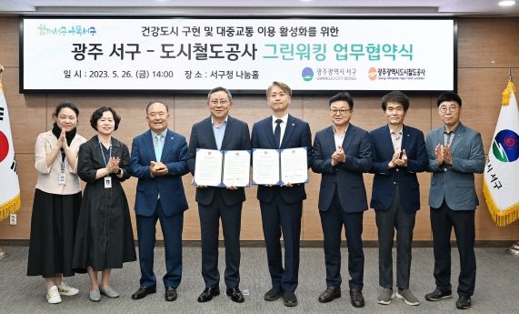 [제주교통복지신문 김강석 기자] 광주광역시 서구는 26일 서구청 나눔홀에서 광주도시철도공사와 그린워킹 업무협약을 체결했다.