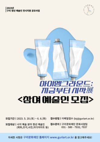 [제주교통복지신문 김강석 기자] 구리문화재단(이사장 백경현)은 오는 6월 6일까지 기획전시 '아이엠그라운드 : 지금부터 시작展'에 참여할 청년예술인을 모집한다.