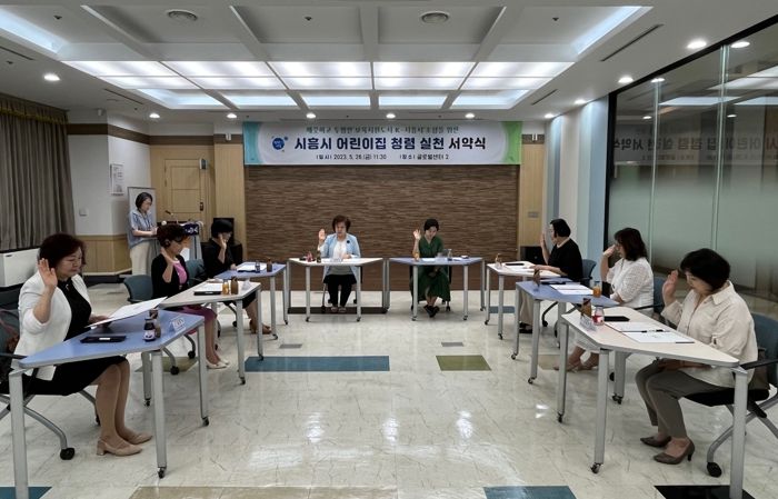이번 청렴실천 서약식은 관내 어린이집의 자발적인 청렴실천 참여를 유도하고, 깨끗하고 투명한 ‘보육지원도시 K-시흥시’를 조성하기 위해 시흥시어린이집연합회 회장 및 임원 총 7명이 참여해 진행됐다.