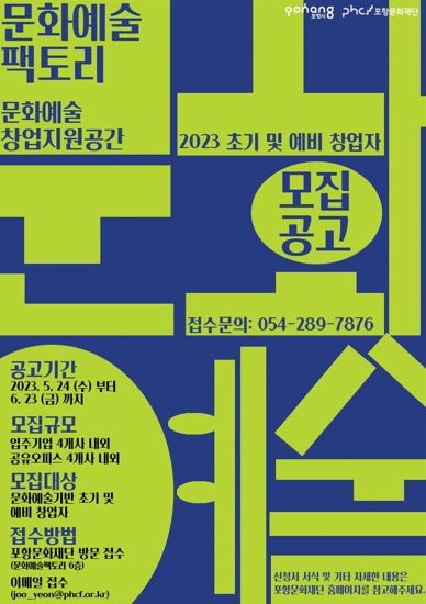 [제주교통복지신문 김강석 기자] 포항문화재단은 지역 문화예술산업 지원을 위해 내달 23일까지 문화예술팩토리 입주기업을 모집한다고 밝혔다.