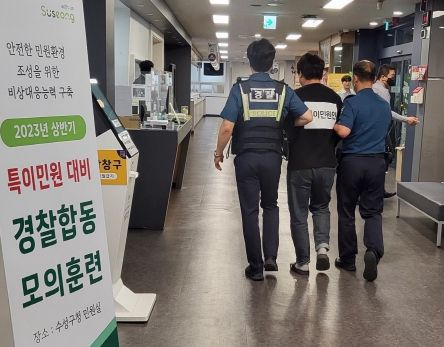 민원 담당 공무원, 청원경찰 및 수성경찰서 범어지구대와 합동으로 열린 이번 훈련은 신속하고 체계적인 비상 대응체계를 구축해 민원인의 폭언과 폭행 등 특이민원 발생 시 민원 담당 공무원을 보호하고 다른 민원인의 2차 피해를 예방하기 위해 마련됐다.
